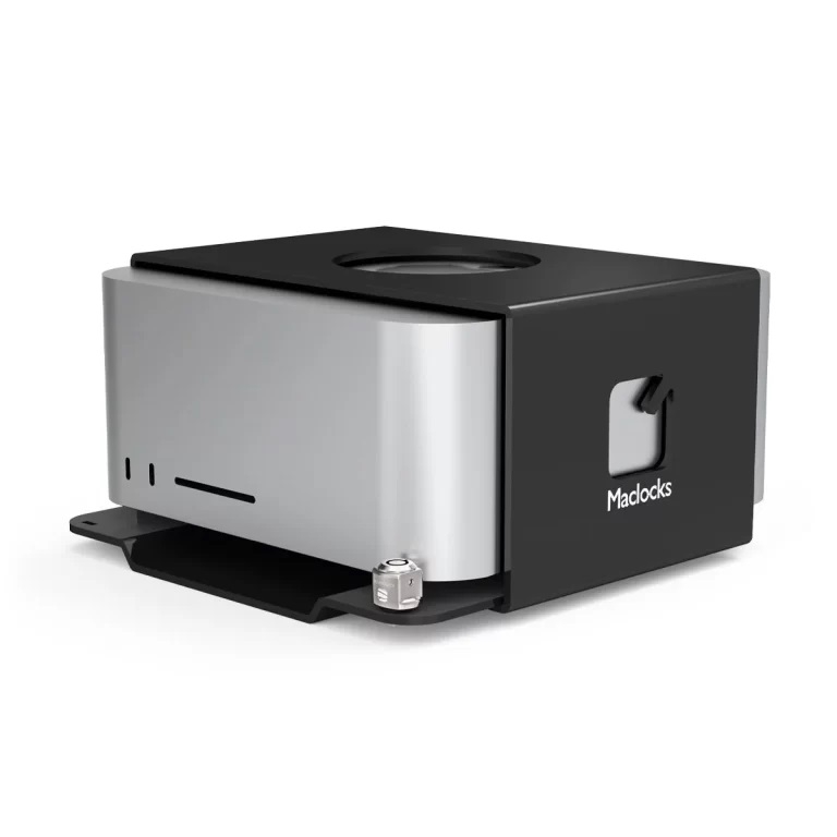 「Mac Studio用セキュリティマウント」は、Mac Studioを盗難から守る高品質アルミ合金製のシリンダー錠式ロックマウントです。Mac Studioを机やカウンタートップなどの平面や壁に安全に固定できます。
