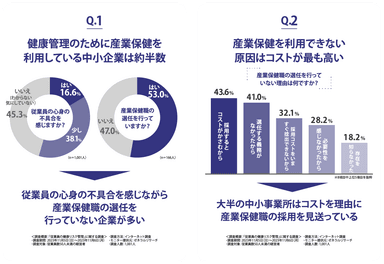 従業員の健康管理を行う必要があると考えている中小企業は約6割とされています。一方で産業医・産業保健師といった専門職を導入コスト面で断念しているケースは少なくありません。当社は以前より50人未満の産業医選任義務の無い事業所向けに訪問産業保健師と顧問産業医を組み合わせたサービスを提供してきました。令和6年5月20日より事業協同組合や企業連合が行う傘下企業群への産業保健サービスに対して令和6年度団体経由産業保健推進助成金の申込が始まりました。新サービス「産業保健リンク」では同助成金を活用した事業者団体が傘下企業に対して行う産業保健サービスを支援し幅広い企業に健康管理を届けていきます。