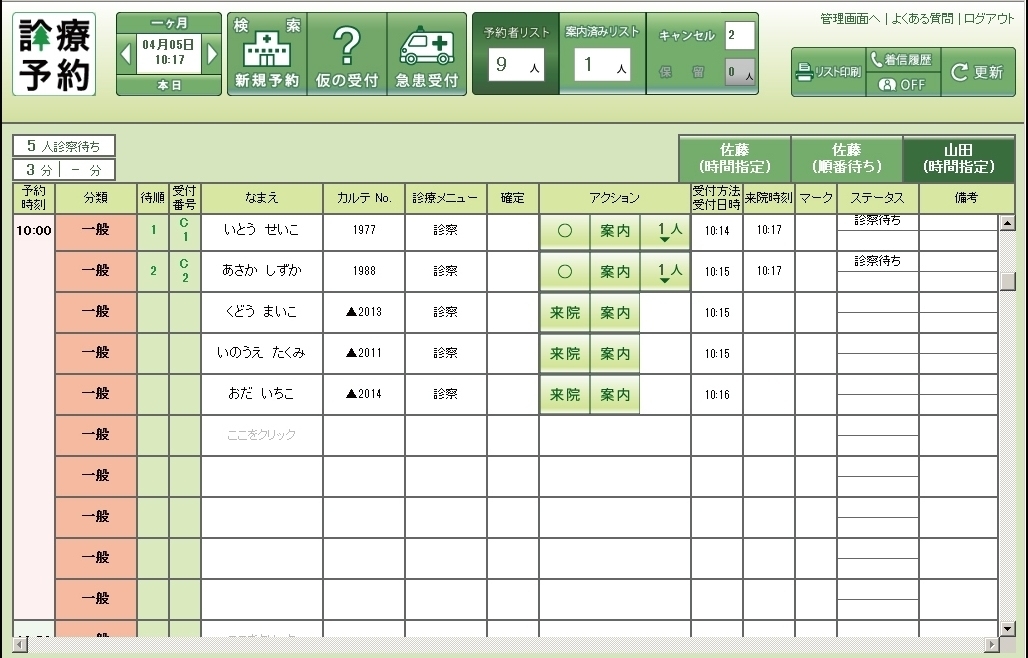 ・病院・クリニックでは、順番待ちリストや予約リスト画面を操作して予約管理を行います。