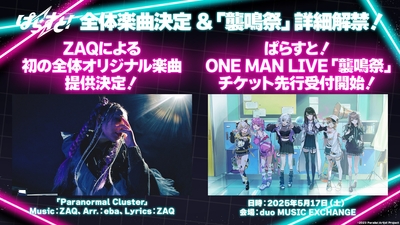 ZAQによる「ぱらすと!」初、全体オリジナル楽曲の提供決定!さらに、ぱらすと! ONE MAN LIVE「襲鳴祭」(5/17開催)のチケット先行受付開始!