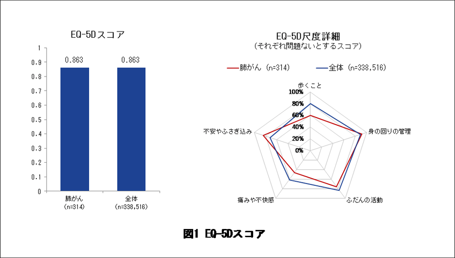 肺がんで1年以内に入通院歴のある患者さんのQOLは、スコアにすると一般生活者と同程度で