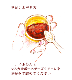 ブルーベリーを練り込んだあんことマスカルポーネチーズを使った自家製クリームを歯切れの良い最中皮に、お好みでサンドしていただく一品です。