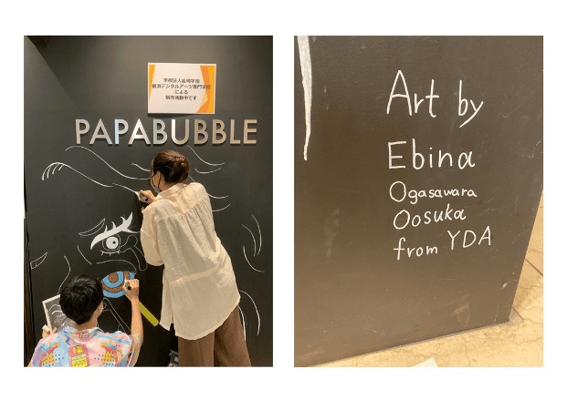 「学校法人岩崎学園 横浜デジタルアーツ専門学校」の学生が、「世界一おもしろいお菓子屋さん」パパブブレの店舗壁 面にアート作品を毎月描き込み、発表していきます。