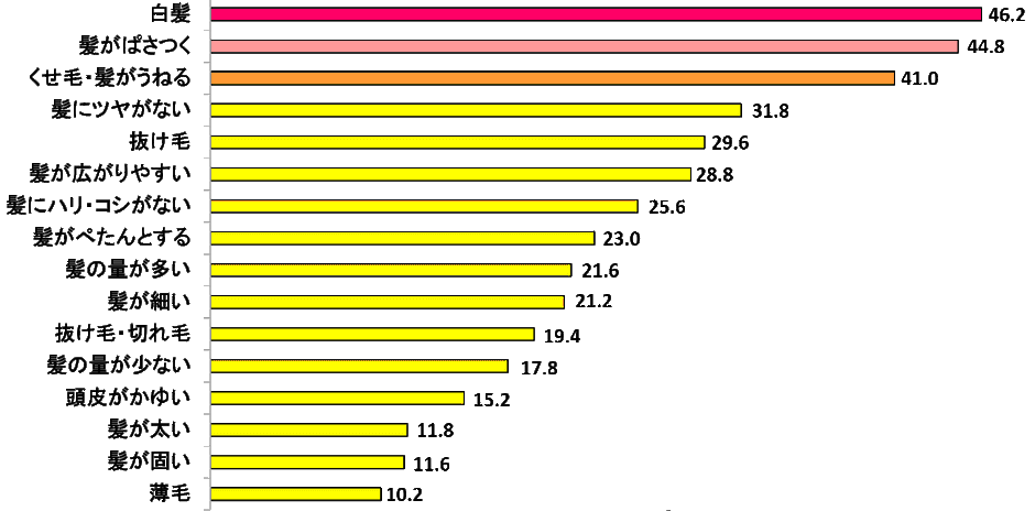 年齢を重ねるといろいろな部分に悩みが増えてくるもの。髪の悩みも例外ではありません。ポーラの調査によると、50歳以上の髪の悩みは、白髪、髪のツヤ、抜け毛、ハリコシ不足などの悩みが上位を占めます。カラーリングやヘアケア製品だけにとどまらず、ウィッグへのニーズもさらに掘り起こせると推察されます。
