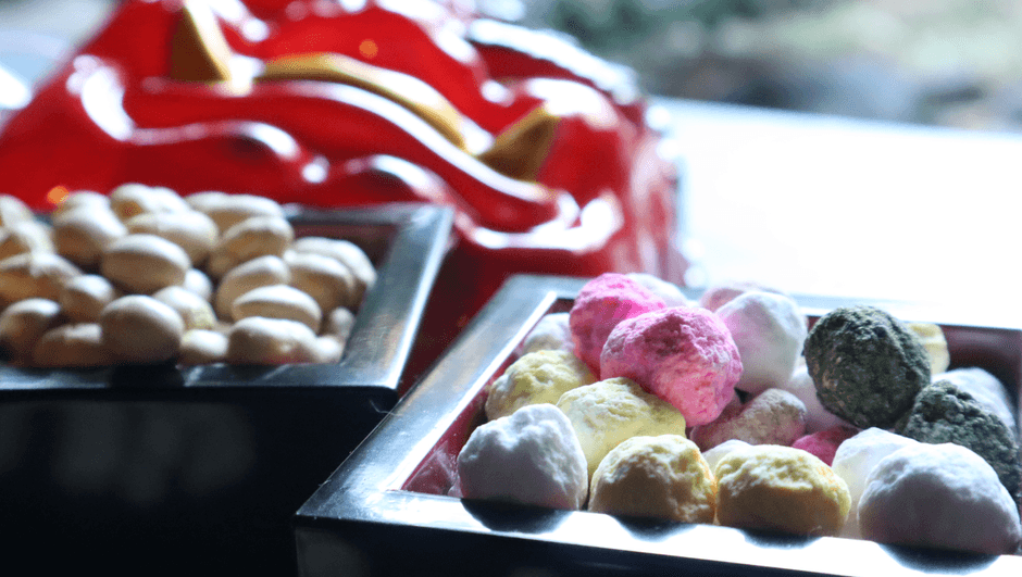 そして明治20年、当時白色しかなかったえんどう豆に青・赤・黄・黒(ニッキの褐色)の四色を加えた「五色砂糖掛豆」(現在の夷川五色豆)を考案し、宮中の五彩色を表現したこの商品は縁起物としても親しまれました。このような伝統的な銘菓の魅力を体験してほしいと考えています。また、Awombの恵方巻「あふるゝすし」は多くの京都産の食材を使用しており、京都の魅力をより一層感じることができる商品となっております。