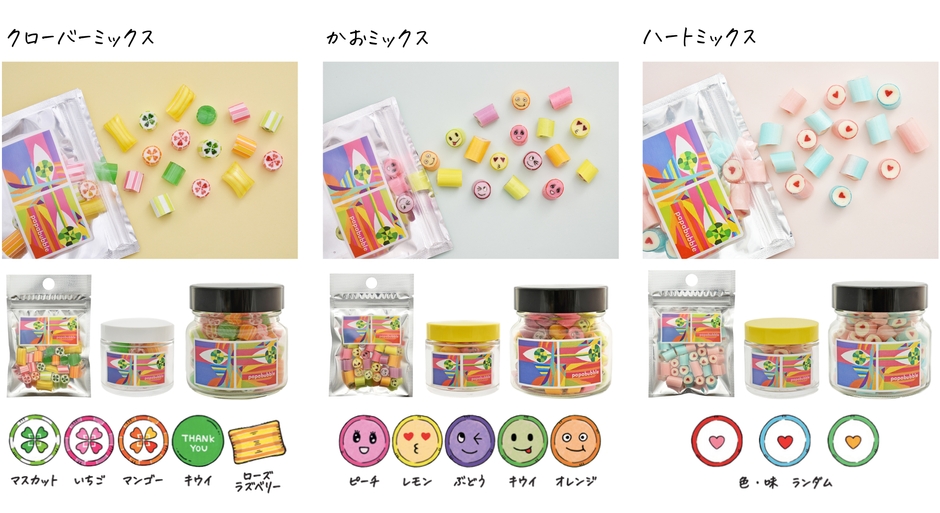 例年、人気No.1の「かおミックス」に加え、「クローバーミックス」と「ハートミックス」を今年はご用意。