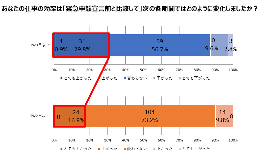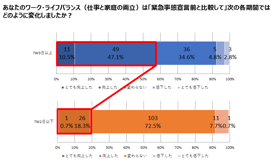 ■週3日以上の継続的な在宅勤務で、ワークライフバランスが向上、仕事の効率が改善