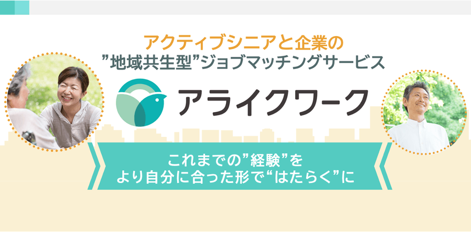 「アライクワーク」は、アクティブシニア(就労意欲のある60歳以上のシニア)と人材不足に悩む企業の仕事をオンラインでマッチングするサービスです。