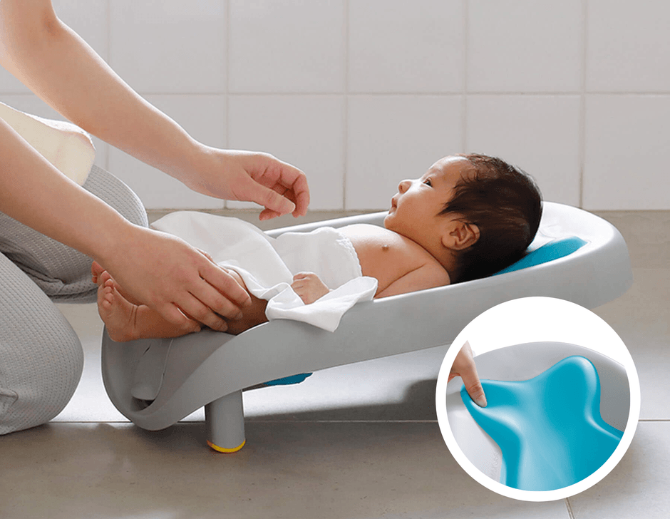お尻の部分にお湯を溜めると赤ちゃんのお尻はぽかぽか。ソフトな素材のシートだからお湯を溜めなくてもひんやりしません。
