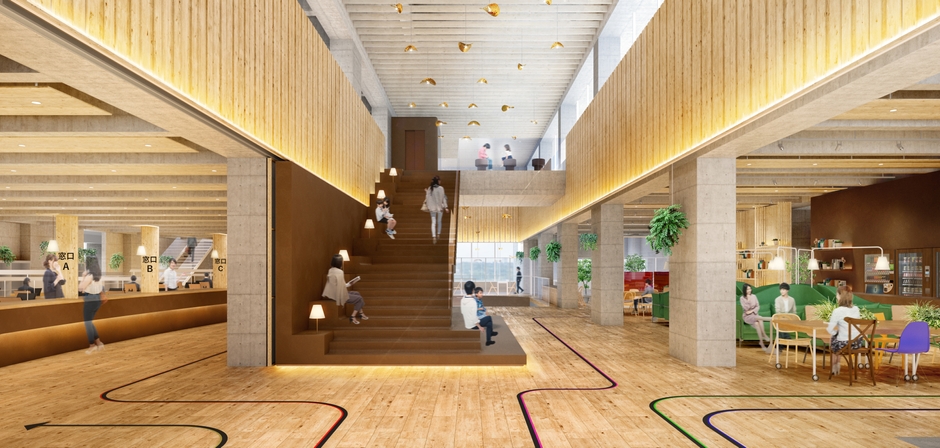 小清水町防災拠点型複合庁舎内「にぎわいのある空間」基本設計時イメージパース