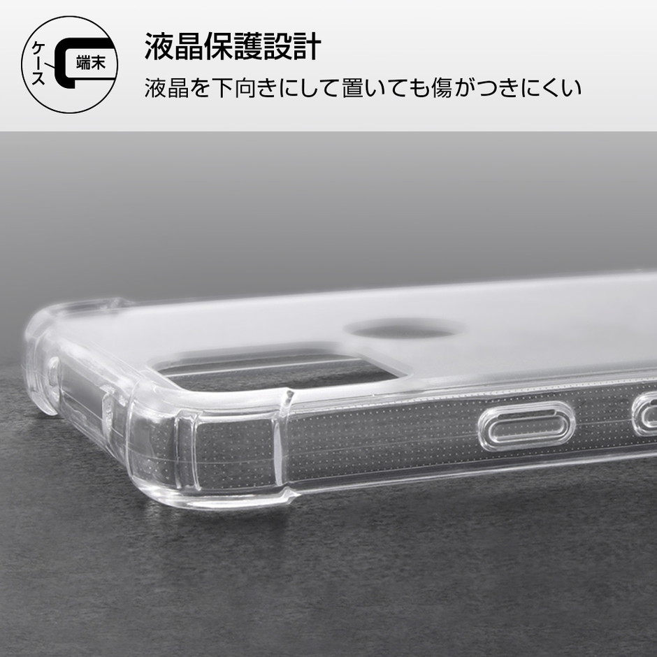 鉛筆硬度2Hで傷に強く、外周は衝撃をやわらげる柔らか素材&四つ角エアクッションで衝撃を吸収。