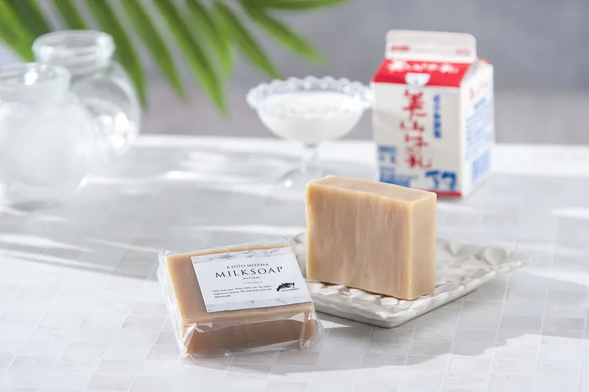 栄養価が高いことで知られるホエイですが、特に保湿性に優れていることから、弊社では、コスメブランドシリーズ『美山牛乳物語』の第一弾として「京都のミルクせっけん」を開発・販売してきました。「京都美山の潤い乳液」は同シリーズの第二弾となります。