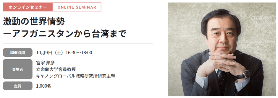 ■ オンラインセミナー 「激動の世界情勢―アフガニスタンから台湾まで」概要