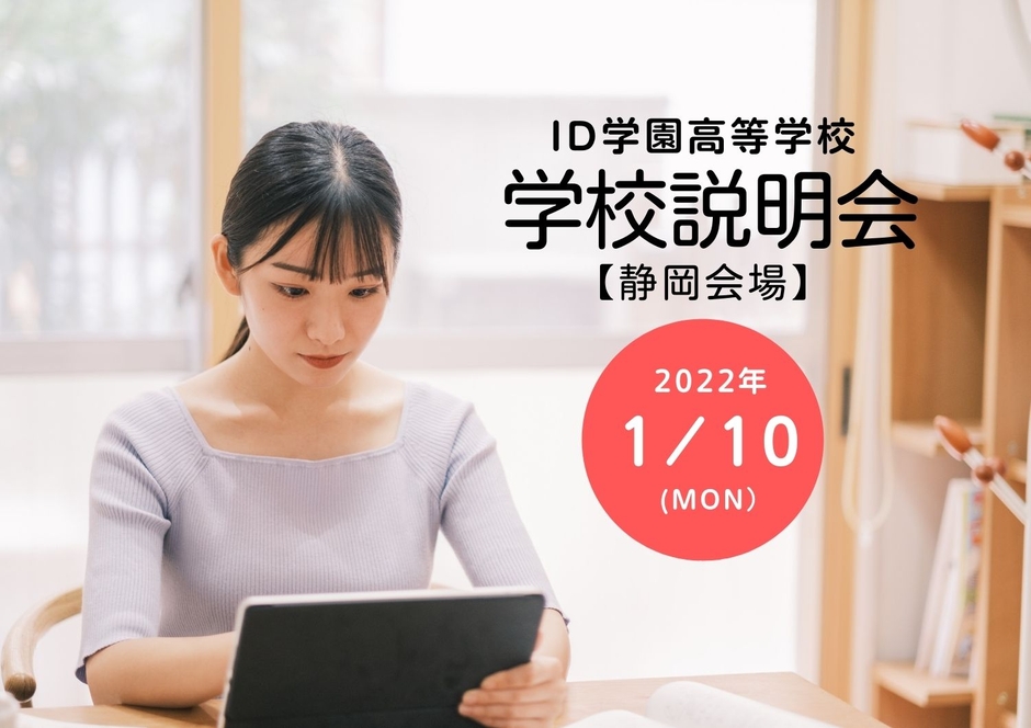 ID学園高等学校より、2022年1月10日(月・祝日)に開催いたします『静岡県近隣生用の学校説明会』のご案内です。