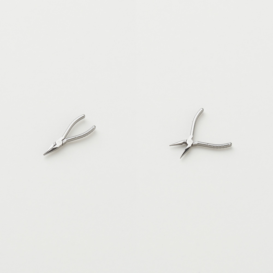 今回企画したラペルピンは、ミニチュアサイズのハサミ、ノギス、マイクロメーター、ラジオペンチ、モンキーレンチです。大きさはそれぞれ直径約2.5cmで、これだけ小さくても実物と同じように可動する精巧な作りが特徴。微細な部品製造に使われる技法を取り入れており、職人が一つ一つ丁寧に手作りで仕上げたこだわりのラペルピンとなっております。スーツのアクセサリーとして胸元に“遊び心”を演出します。