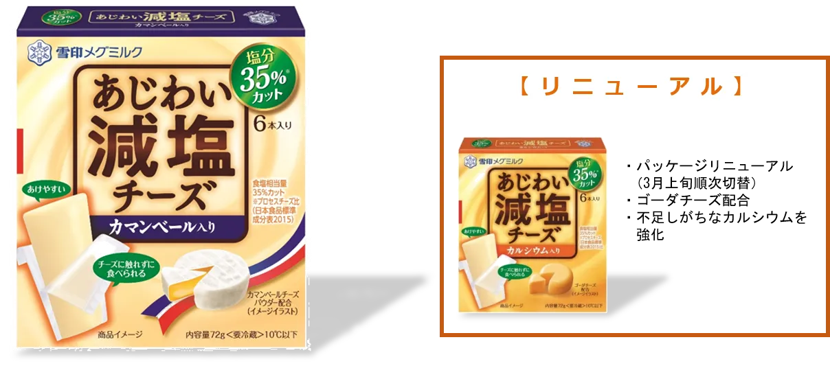 現在発売中の「あじわい減塩チーズ」は、チーズの塩分が気になるお客様から評価いただいており、塩分控えめのニーズに応えるため、ラインナップの強化を図ります。