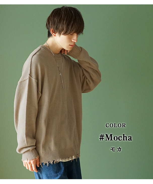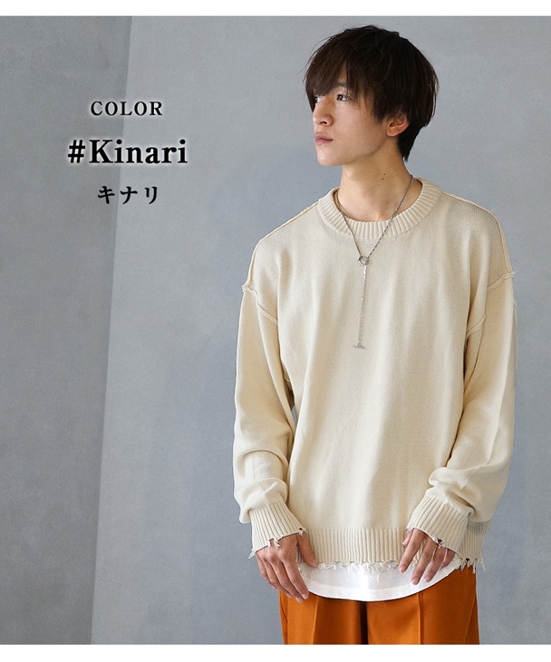 7Gダメージ加工クルーネックニット