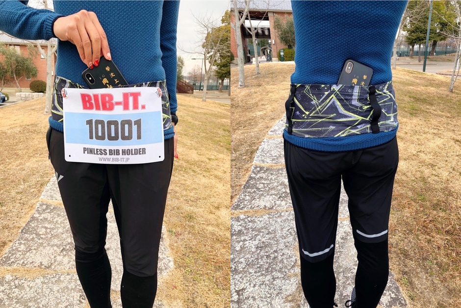 付属のゼッケン留めは、ピンを使用しない安全でエコなゼッケン留めとして評価が高いBIB-IT.を使用していますので、ランニングベルトに穴を開けることなく繰り返し使用が可能です。