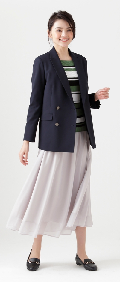 働き方の変化とともに仕事服の多様化が進み、ブラウス・ニット・パンツ・スカート・ワンピースなどの様々なスタイルが仕事服として定着する中で、着回し力に優れオールマイティーに活躍する“紺ブレ”が再注目されています。このようなニーズを踏まえ、当社では昨年に発売して好評をいただいたネイビーブレザーの取り扱い店舗を、今春は全店に拡大して販売を強化していきます。
