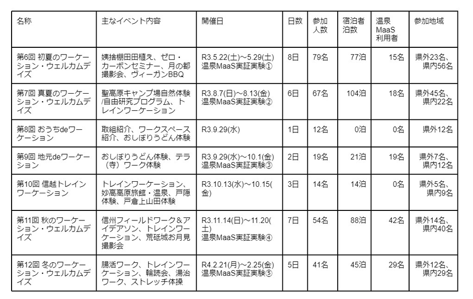 千曲市ワーケーション・ウェルカムデイズ開催実績