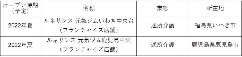 また、2022年夏以降に「ルネサンス 元氣ジムいわき中央台」、「ルネサンス 元氣ジム鹿児島中央」の開設を予定しております。