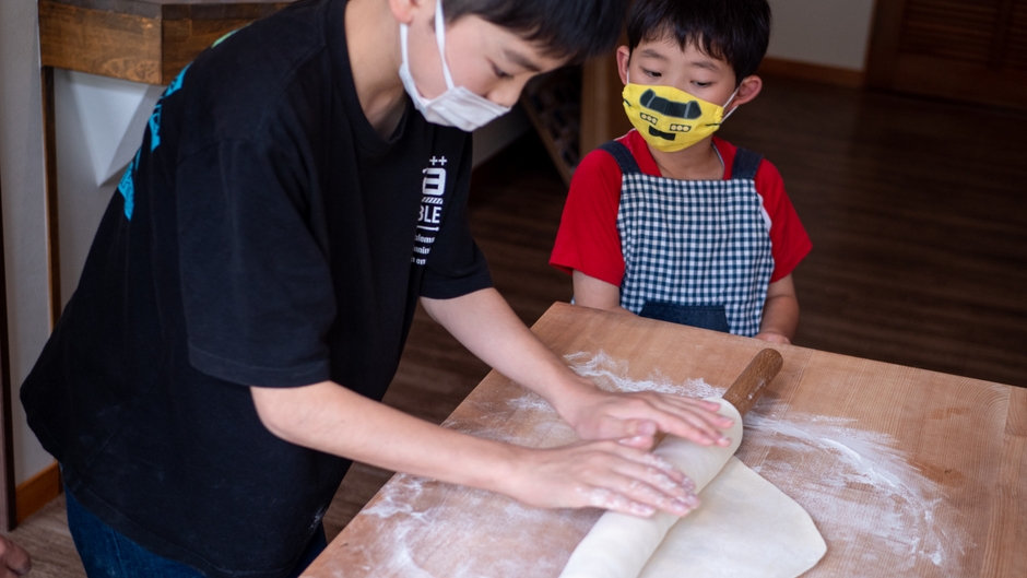 コワーキングスペースを兼ね備えた宿泊施設「働Co-livingみなのsubako」を貸切にしたイベントでは、埼玉県より「ふるさとの味伝承士」に選ばれた皆野町在住の阿佐美氏によるうどん作り体験を行います。うどんは秩父地域の家庭料理で、昔は家でうどんを打つのは普通のことだったと阿佐美氏は話します。地域に根付く伝統的なうどん作りを地元のおばあちゃん達が丁寧に教えてくれます。