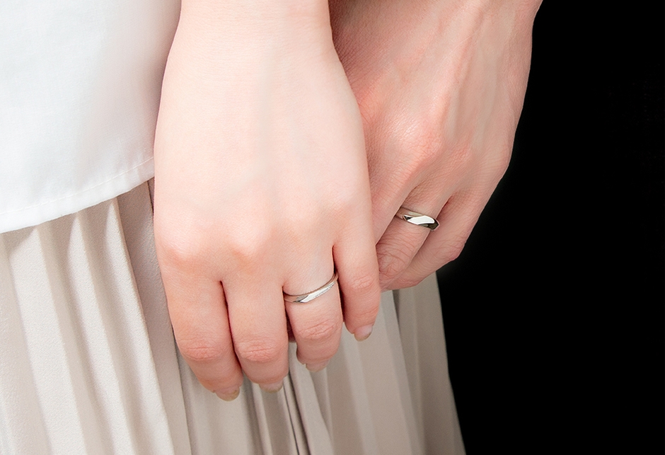 『フォルテ』はウェーブラインのデザインでありながら、手のひら側をストレートにしており、様々なデザインの指輪にも重ね着けができます。