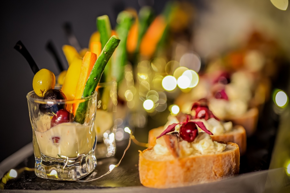 【ブッフェ料理】キャロットラペとグリーンレーズン オレンジマリネ/モッツァレラ・チョリソー・オリーブ/肉厚マッシュルームのオーブン焼き/ハーブソーセージ/シューシュトリングポテト・トリュフ風味/天使海老のカダイフ揚げ ガラムマサラ風味/ベーコンのグリル&ジャガイモ&サワークリーム・オントースト/サーモンマリネ&彩り野菜のグレッグ・オン・トースト/オイルサーディン&赤玉ねぎ・オン・トースト/カラフルトマトとモッツァレラのコカ/焼き茄子&オイルサーディンのコカ/トリュフと茸のキッシュ/ラスパドゥーラチーズ/シャドークイーンのロースト&リコッタチーズ/ビーツのロースト&リコッタチーズ