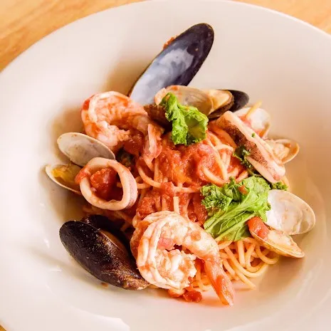 海の幸のパスタ+ポプラの前菜 小+パン+食後のお飲み物
