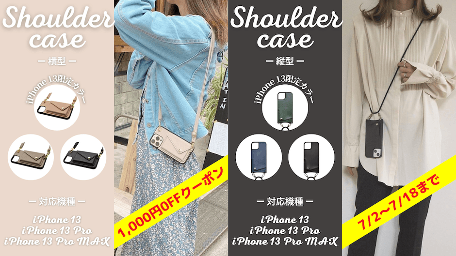 今、人気!iPhone13シリーズ用「スマホショルダーケース」で使える1,000円OFFクーポン配信!