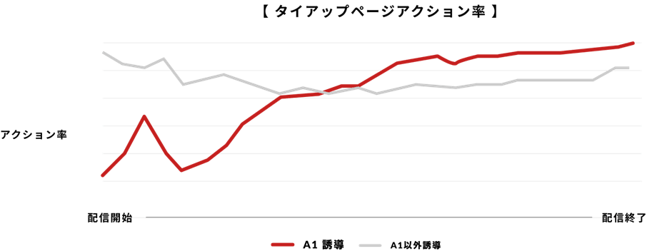 ブースト開始後、BBXから誘導した際のアクション率が徐々に上昇。最終的にBBX以外のアクション率を上回る結果となった。