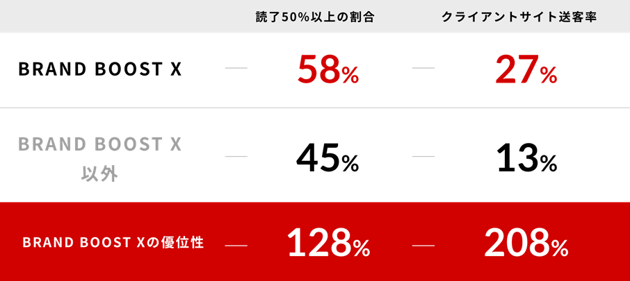 BRAND BOOST Xのクライアントサイト送客率がそれ以外の約2倍に。