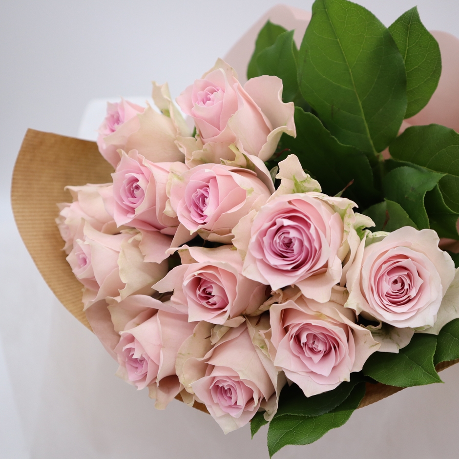 12本のバラと葉物を束ねた、シンプルながらも美しいブーケ。あなたとあなたの大切な方を幸せにする花束です。