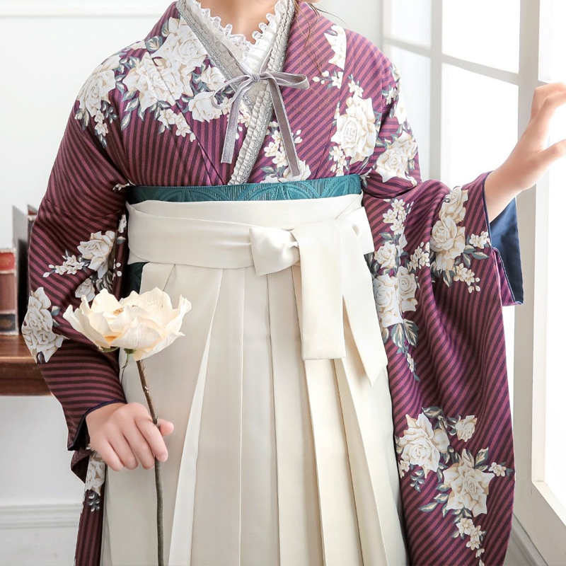 袴と合わせて、卒業式・謝恩会にぴったりの袴スタイルに。 普段着着物として、長めの袖でアンティーク風な着こなしに。