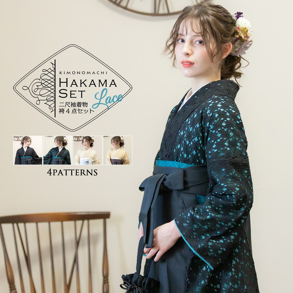 2023年卒業式袴に。オリジナルデザインの二尺袖着物単品/レース二尺袖着物4点セットが新発売