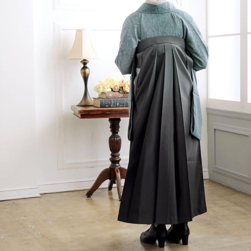 袴:アイスグレー地、腰の部分に白の椿の刺繍