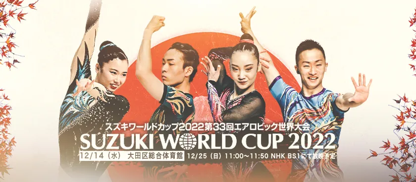 スポーツとしてのエアロビックを生涯・競技スポーツの両面で、普及・振興する、公益社団法人日本エアロビック連盟(所在地:東京都品川区、会長:遠藤 利明)と国際エアロビック連盟は日本代表のメダル獲得が期待される「スズキワールドカップ2022 第33回エアロビック世界大会」を12月14日(水)に大田区総合体育館(東京都大田区)で開催します。2019年の前大会から3年ぶりの開催です。