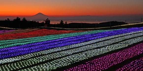夜のイルミネーションだけでなく、夕暮れに染まる東京湾や、天気の良い日には遠くに富士山のシルエットを望むことができるマザー牧場の「光の花園」。