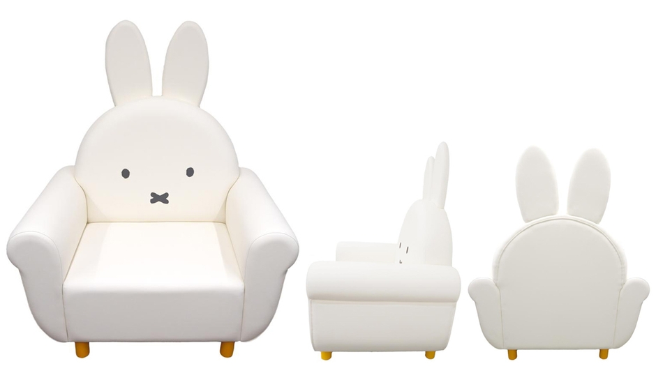 「ミッフィースタイル」オリジナル ソファは、『ミッフィー』をモチーフにしたとってもかわいいソファで、ソファ全体で『ミッフィー』を表現しており、大きなお耳と背もたれの『ミッフィー』の顔は、インテリアとしても目を引くこと間違いなしです。汚れがふき取りやすく、丈夫な合皮の生地を使用しているのでお手入れも簡単です。また座面の広さは、大人でも余裕のあるサイズとなっているので、『ミッフィー』に包み込まれているかのようなゆったりとした座り心地を実現しています。