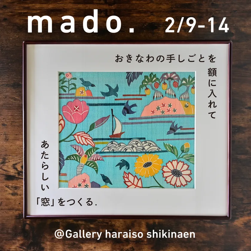 沖縄の染織りを通じて沖縄の景色を嗜む「琉球借景」をテーマに、Galleryはらいそ(運営:monobox株式会社、本社:沖縄県うるま市、代表取締役:河野 哲昌)が提案するオリジナルフレームを、Galleryはらいそ識名園にて2月9日(木)~2月14日(火)の期間限定でお披露目いたします。