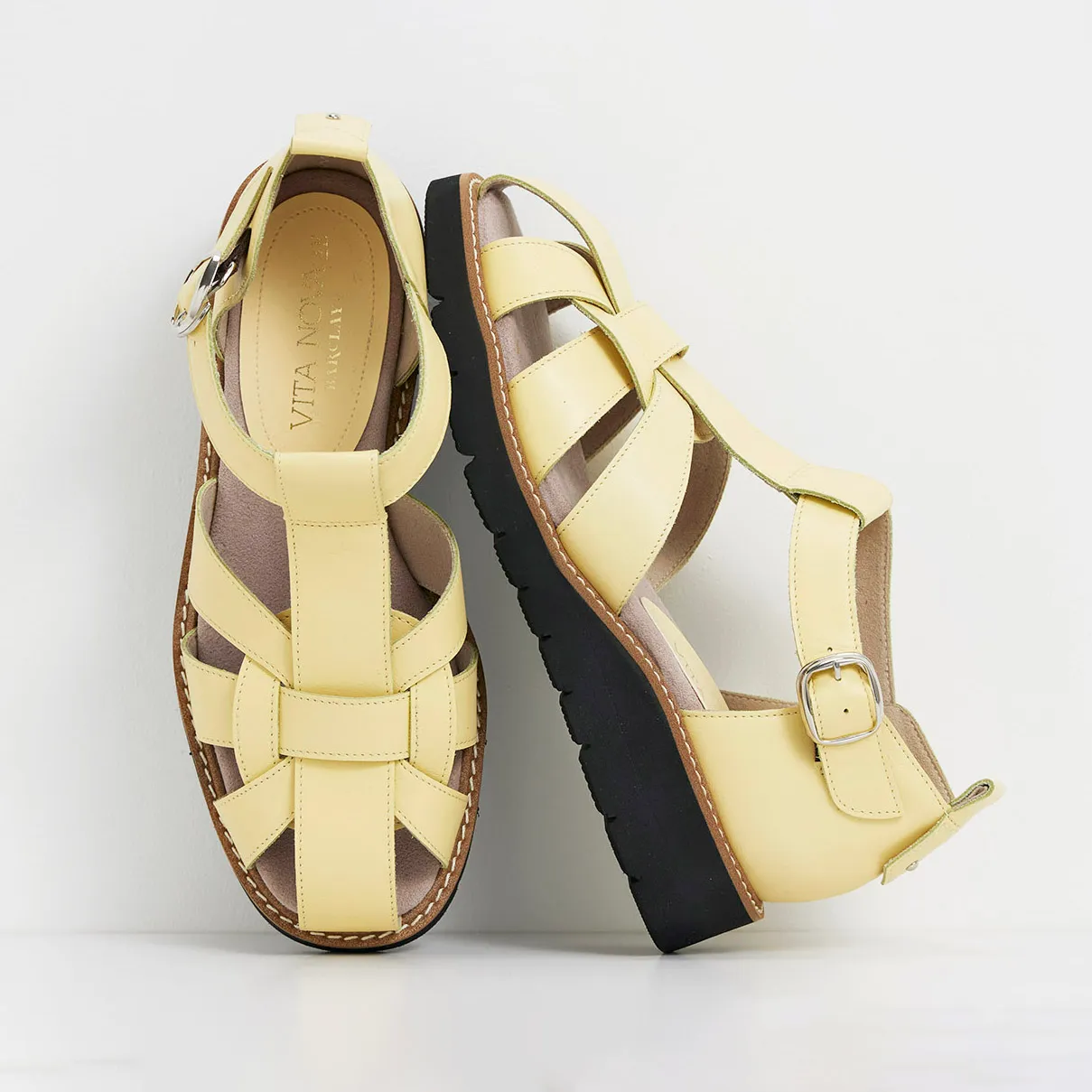今年のマストアイテム「グルカサンダル」淡いイエローが最旬コーデを演出。