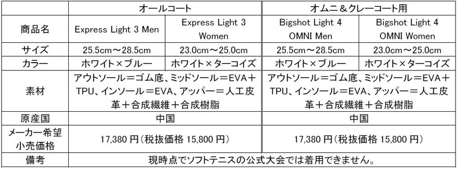 ■テニスシューズ「Express Light 3」「Bigshot Light 4 OMINI」の概要
