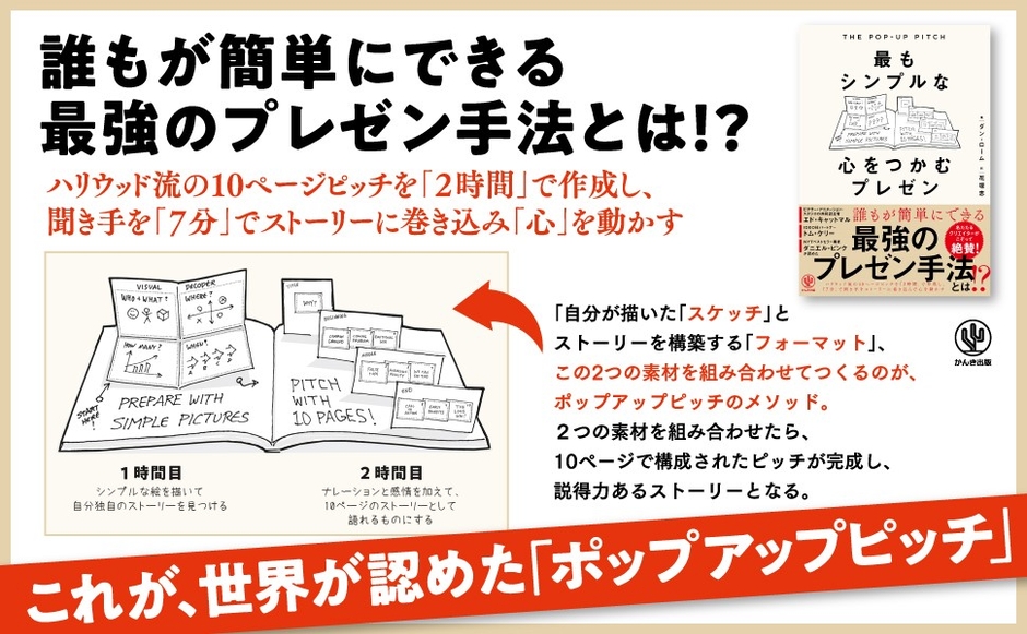 それが、本書で紹介するPOP-UP PITCH(ポップアップピッチ)=誰もが簡単にできる最強のプレゼン手法です。