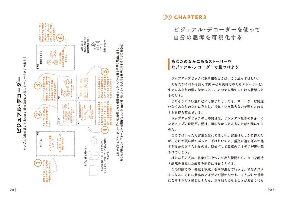 エド・キャットマル(ピクサー・アニメーション・スタジオの共同設立者)、トム・ケリー(IDEO社パートナー)、ダニエル・ピンク(NYT ベストセラー著者)ら、著名人からも絶賛の声が相次ぐ手法を、親しみやすいイラストと図版を交えてわかりやすく解説。次のプレゼンから実践できるノウハウがこの一冊に詰まっています。