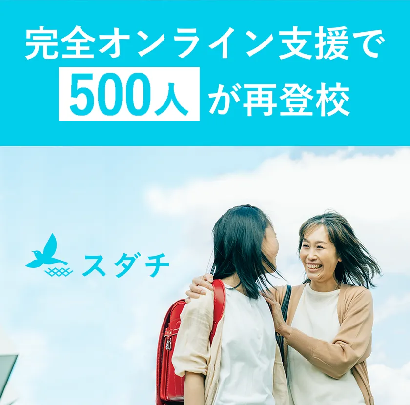 不登校の子どものサポートを行う株式会社スダチ(所在地:東京都渋谷区、代表取締役:小川 涼太郎、以下:スダチ)は、完全オンラインの支援で子どもたちの再登校を促す「不登校支援サポート スダチ」を展開しています。2023年6月、サービス開始からおよそ3年で、累計再登校人数が500人を突破しました。