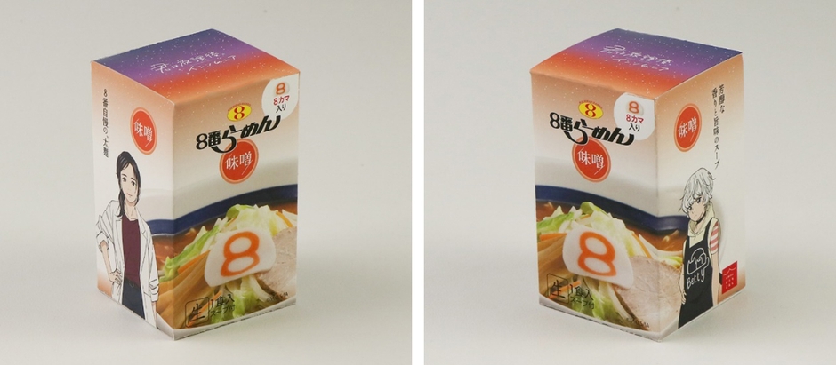 8月11日より、登場人物を描いたパッケージの「8番らーめん常温麺」を販売開始