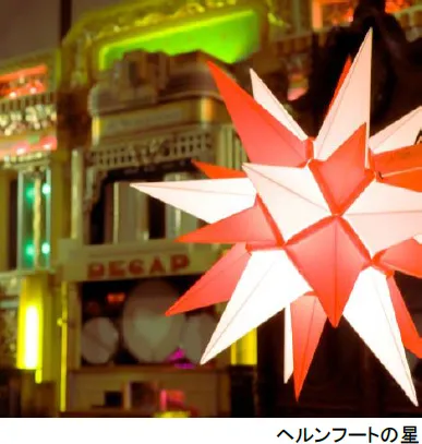 ※イエス・キリストの誕生を知らせ、東方の三博士をベツレヘムに導いた「ベツレヘムの星」を現したイルミネーション装飾。商業生産されたドイツ・ザクセン州の町ヘルンフートにちなみ、ドイツでは「ヘルンフートの星」と呼ばれる。