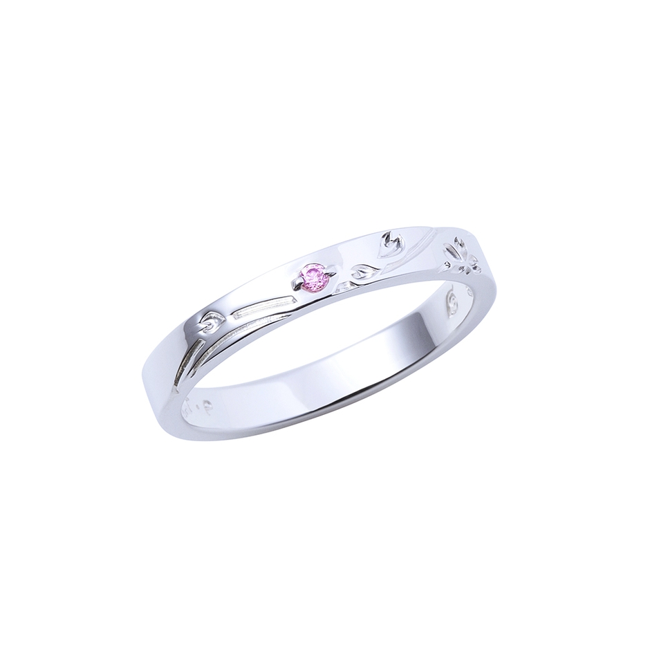 ストレートフォルムのリングに流れるような桜をモチーフに取り込んだデザイン。