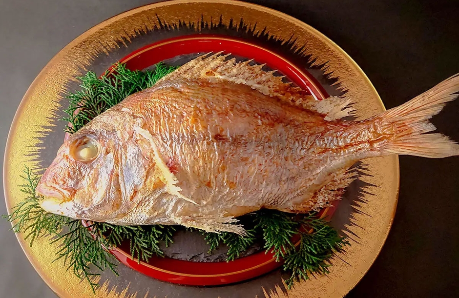 明石鯛の食感と旨味が絶品です。御祝の席にもピッタリな華やかな逸品です。