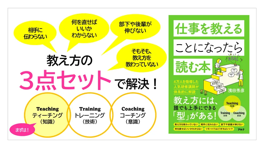 株式会社アルク(本社:東京都千代田区、代表取締役社長:天野 智之)が2021年に刊行した『仕事を教えることになったら読む本』(濱田 秀彦/著)は、書店やSNSを筆頭に、「教え方」に悩む多くの社会人から反響を呼んでおり、7刷6,000部の重版が決定したことをお知らせいたします。